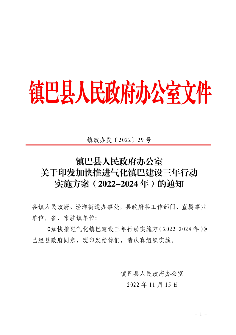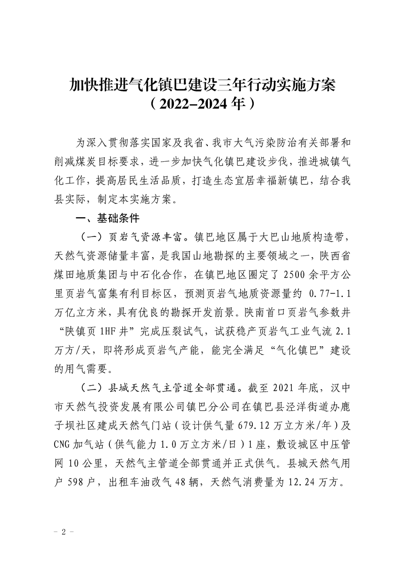 关于印发加快推进气化镇巴建设三年行动实施方案(2022-2024年)的通知
